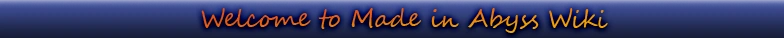 Hello and welcome to the Made in Abyss Wiki, the encyclopedia for the anime and manga, Made in Abyss, that anyone can edit. Please feel free to contribute to this site and help complete the goal to build the most informative site for everything related to Made in Abyss online, or even just peruse and find information you may not have known before! From all the editors here at the Made in Abyss Wiki, thank you for your contributions and happy editing!